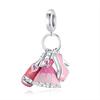 Pink One Copper Princess Dress&Water Cup&Bag&Carousel Dangle Charm Fit Brand Bracelet Girl'S Jewelry