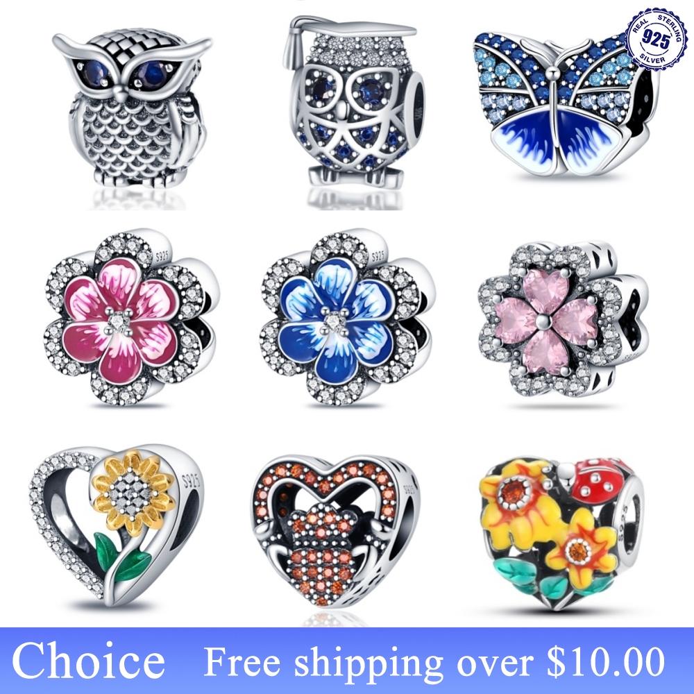 Style Copper Owls Beads & Flower Series Charms Fit Original Fine Bracelet Necklace Fine Jewelry Gifts