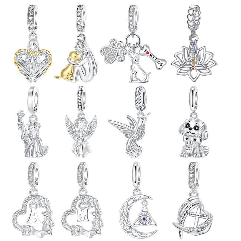 Charms Bead Copper Angel Wing Dog Rose Dangle Fit About 4Mm Bangle Bracelet Necklace Diy Jewelry