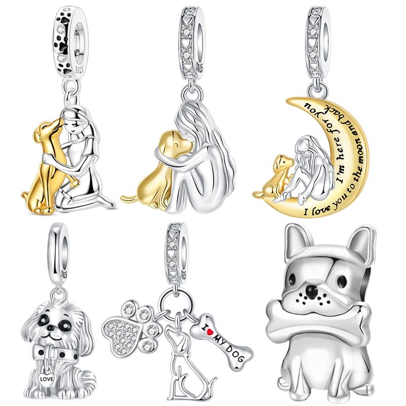 Copper Moon Girl Dog Charms Beads Fit Original Bracelet Making Gift For Woman Jewelry Diy Fashion Pendant