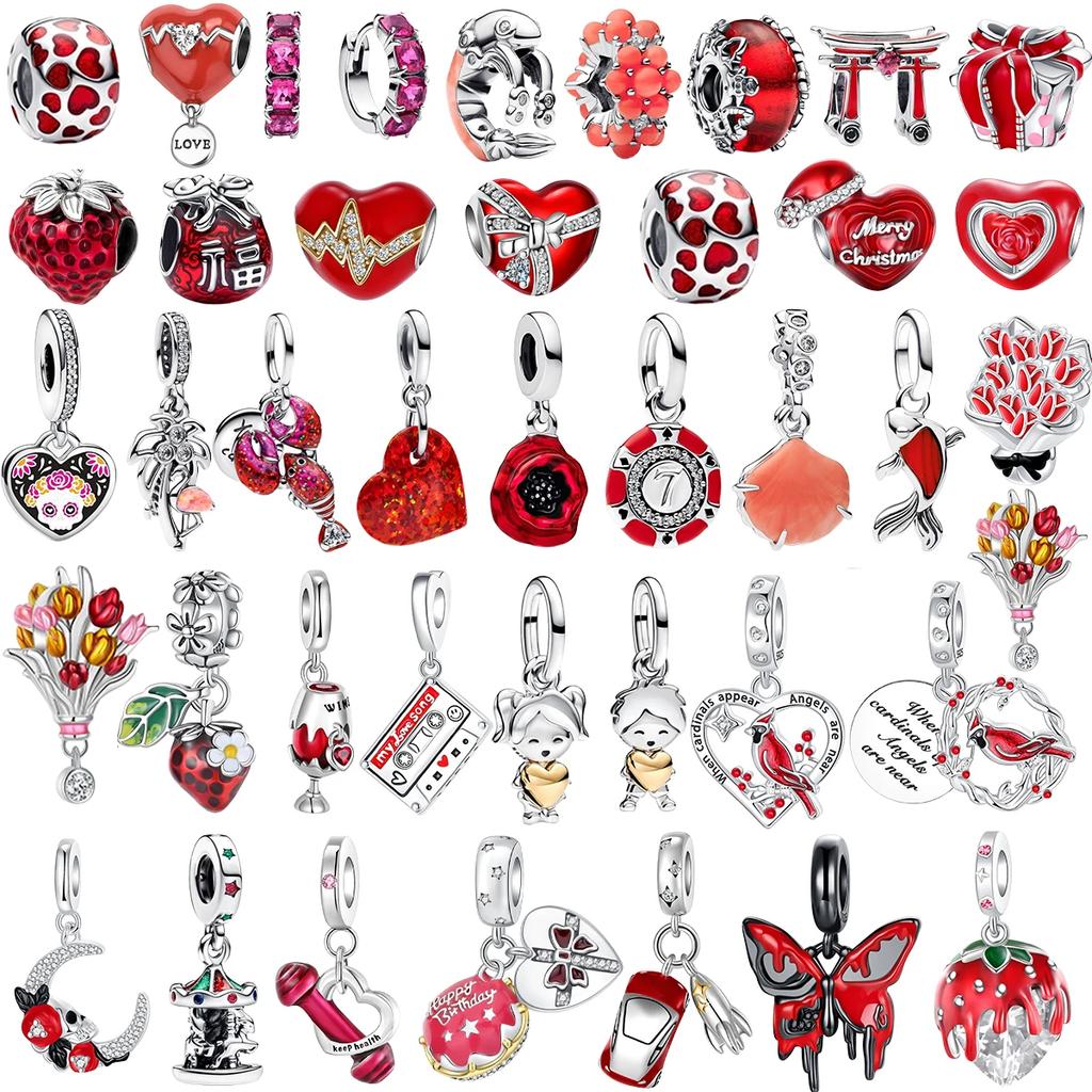Original Copper Red Charms Heart Cherry Strawberry Flower Fish Beads For Necklace Diy Bracelet Present Jewellery