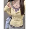 Sweet Fake Two-piece Lace Splicing Long-sleeved T-shirt for Women's Autumn Slim and Thin Pure Desire Bottoming Top