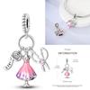 New Copper Charms Beads Pink Series Perfume Cake Princess Skirt Pendant Fit Original Bracelet Diy Jewelry Gifts