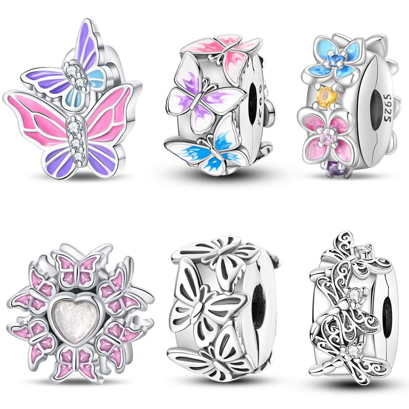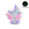 Spring Copper Pink Luminous Butterfly Flowers Charms Beads Fit 3Mm Original Bracelets Fine Diy Jewelry Birthday Gift