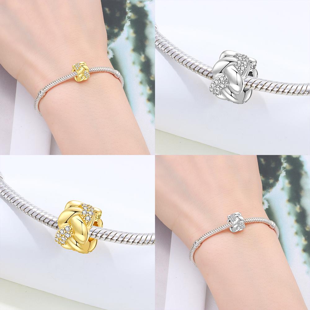 Charms Original Copper Golden Twisted Bead White Zircon Beads Fit Bracelet Women Jewelry Diy Fine Gift Accessory