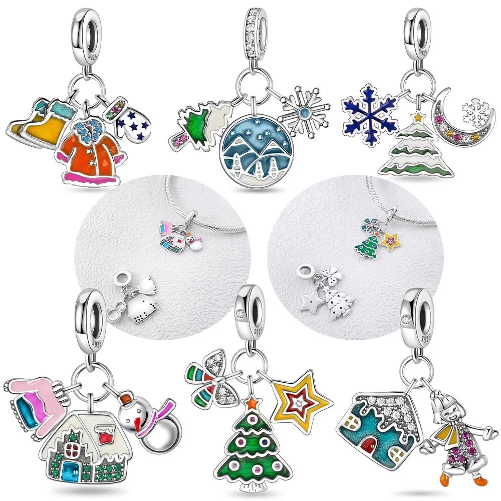 Green Christmas Tree Pendant Snowflakes And Santa Claus Original Charms Copper Beads Fit Bracelet Women Gift Diy Making