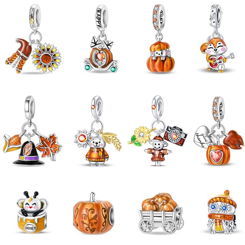 Autumn Harvest Series Copper Squirrel Maple Leaf Pumpkin Charms Pendants Fit Original Bracelets Diy Jewelry