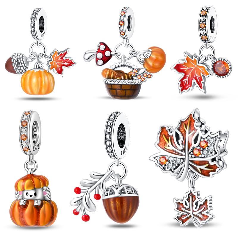 Autumn New Maple Forest Squirrel Pumpkin Car Charms Beads Fits Original Bracelets Bangle Luxury Diy Jewelry Making Women Gifts