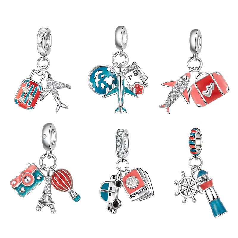 New Original Charm Copper Luminous Airplane Travel Two-Piece Set Charm Bead Fit 3Mm Original Bracelet Women Diy Fine Jewelry