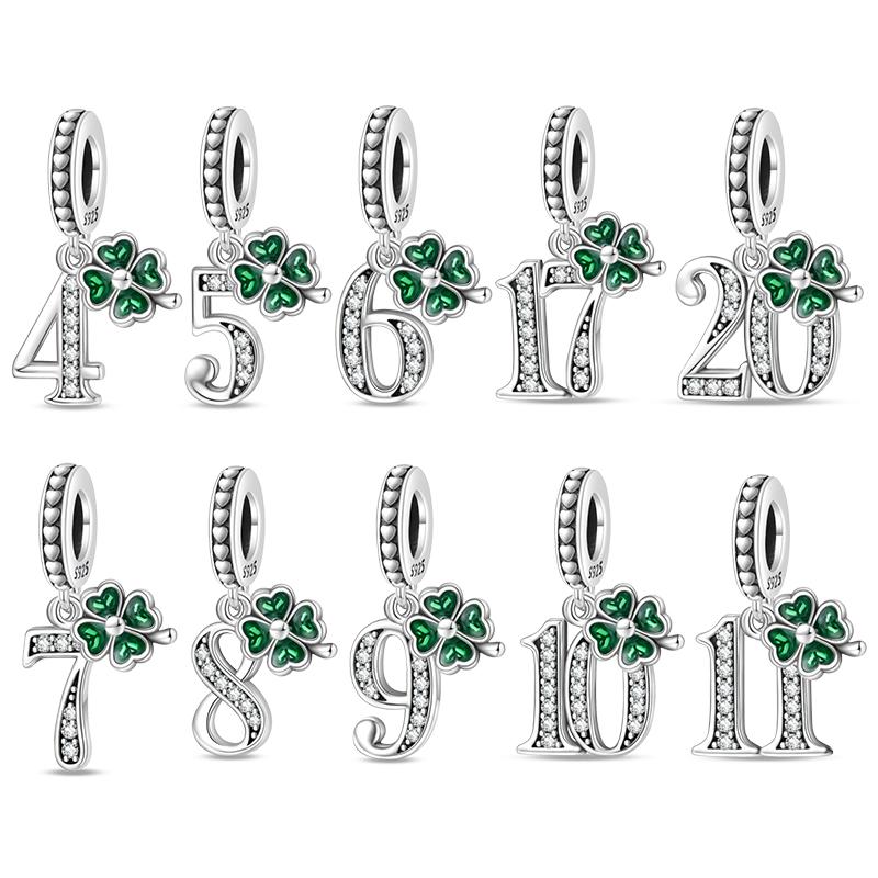 Original Charms Copper Lucky Four Leaf Clover Number Charms Beads Fits 3Mm Original Bracelet Women Diy Jewelry Gift