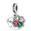 Copper Green Series Four-Leaved Clover Pendant Fine Beads Fit Original Bracelet Charms Women Jewelry