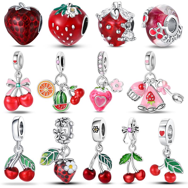 New In Copper Color Strawberry Cherry Fruit Series Charms Beads Fit 3Mm Original Bracelet Necklace Diy Birthday Jewelry Gift
