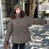 Waist Down Cotton Clothes Women's Long Thickened Warm Big Fur Neck Cotton-padded Clothes Jacket Tide