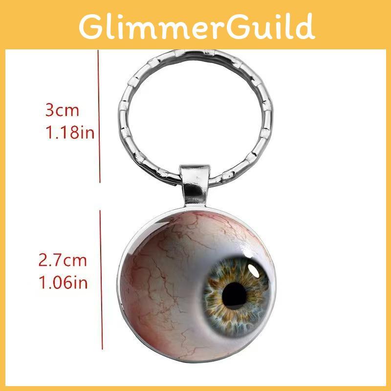 This round glass pendant keychain and necklace feature an eye-catching 2D bloodshot eyeball design, crafted from durable metal. The jewelry measures approximately 2.5cm in diameter, offering a sleek modern minimalist style suitable for daily wear or gift-giving. Its vivid graphic supports various occasions, including celebrations and promotional events. Easy to maintain, simply wipe clean with a damp cloth.