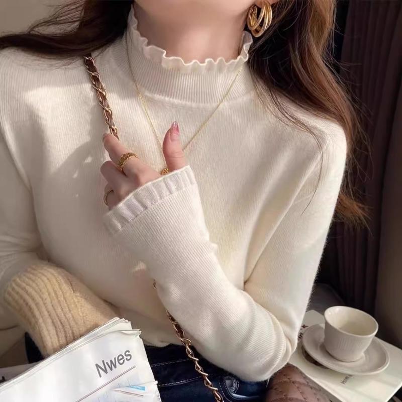 Spring New Design Semi-turtleneck Soft Waxy Slim-fitting Long-sleeved Knitted Sweater Women's Light Professional Style Inner Sweater