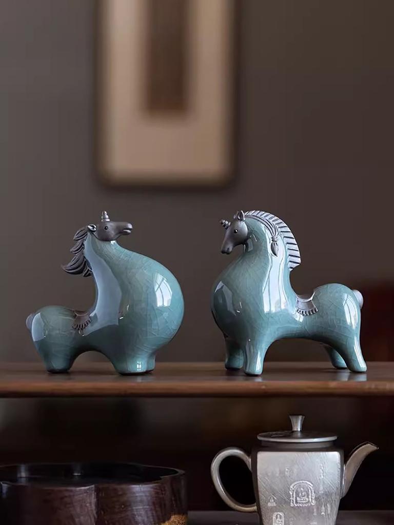 Chinese Style Ge Kiln Horse Decoration Piece, Ceramic Animal, Wild, Creative Home, Living Room, Tea Ceremony, New