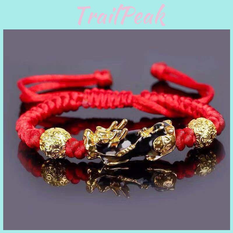 Handmade Alloy Bead Pi Xiu Bracelet With Adjustable Red Cord For Travel And Gifts