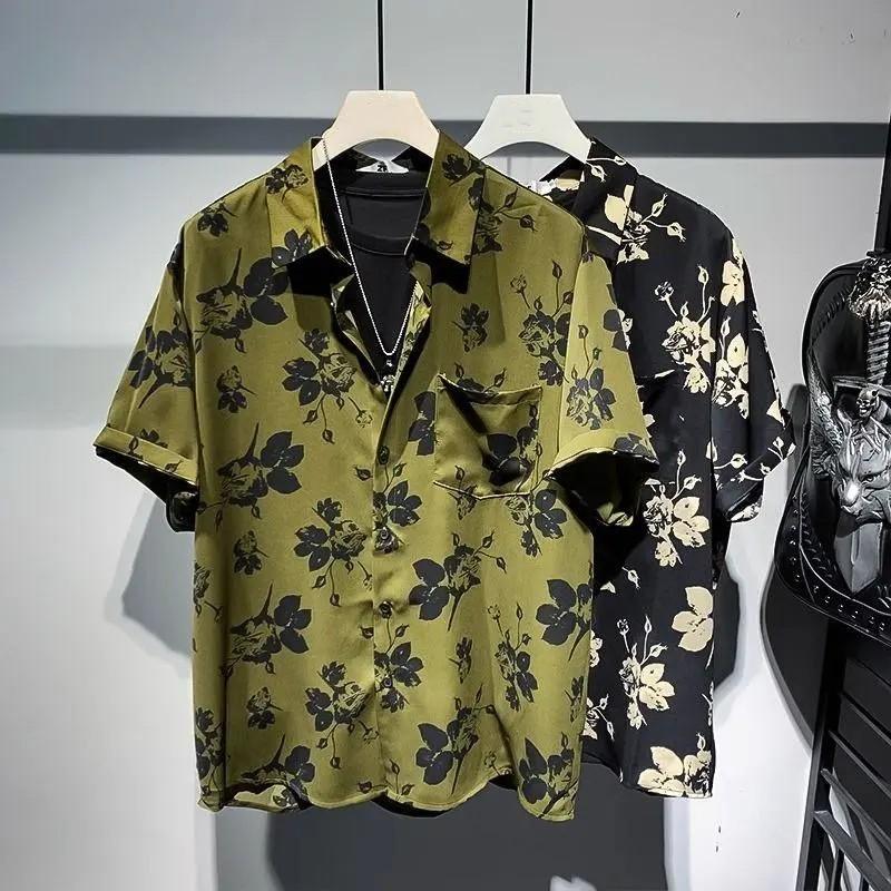 Men's Summer Retro Casual Short-sleeved Shirt Handsome Slimming Floral Shirt Men's Clothing