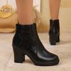 Women's Ankle Boots Autumn Thick Heel High-heeled Short Boots with Zipper Splicing Plus Size Fashion Short Boots