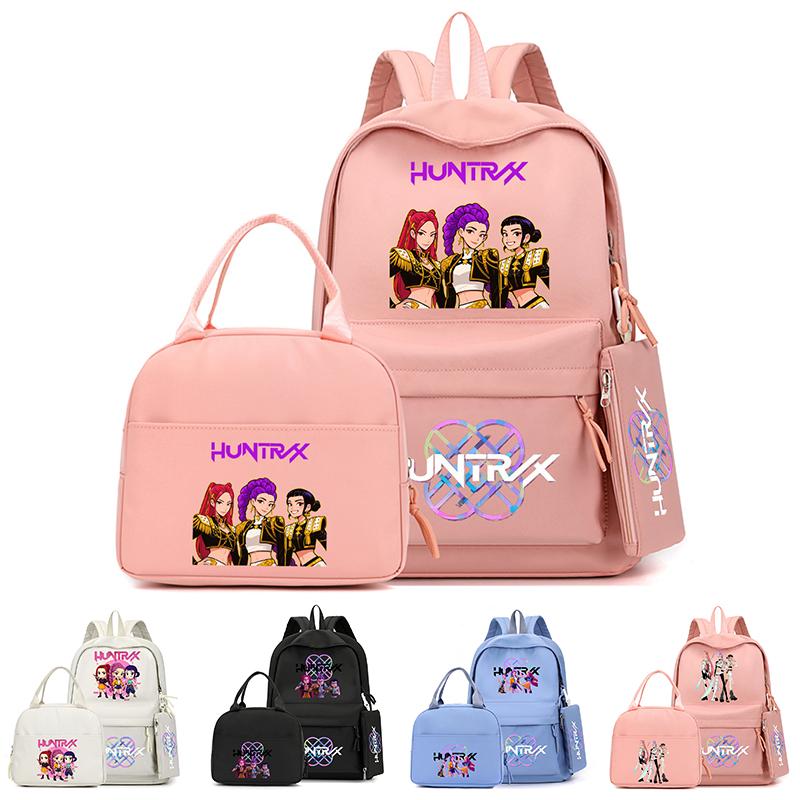 4Pcs/set Anime K-Pop Printed Backpack with Pencil Case Handbag for Teenager Student Boy Girl Bookbag Schoolbag Large Capacity Travel Bag Rucksak