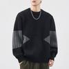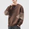 Round Neck Sweater, Men's Loose Fitting Patchwork Striped Knit Sweater, Casual Long Sleeved Pullover Top