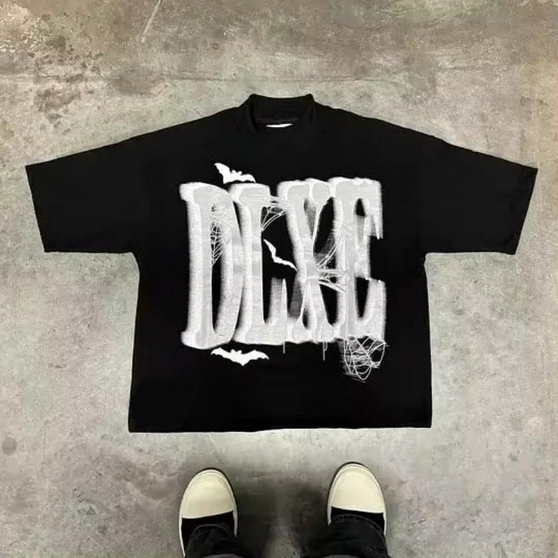 Harajuku Style Fashion Black and White Short Sleeve Men and Women Cartoon Letter Print T-shirt Couple Street Wear Loose Y2K Top