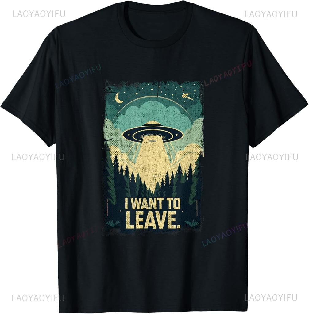 I Want To Leave Science Fiction Extraterrestrial UFO T-Shirt Mens Clothing Print On Demand Graphic T Shirts Casual Camisas