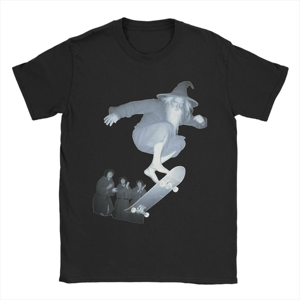 Men T-Shirts Gandalfs On a Skateboard 100% Cotton Tees Short Sleeve L-Lords Of The R-Rings T Shirt Round Neck Clothing Printed