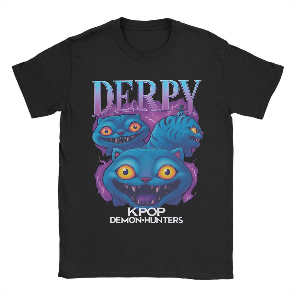 Kpop Demon Hunters Animation Men's T Shirts Huntrix Saja Boys Humor Tees Short Sleeve Round Collar T-Shirt Pure Cotton Clothes