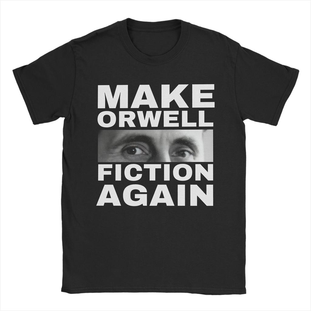 Make Orwell Fiction Again T-Shirt Men Cotton Tops Shirts Funny 1984 Crewneck Short Sleeve
