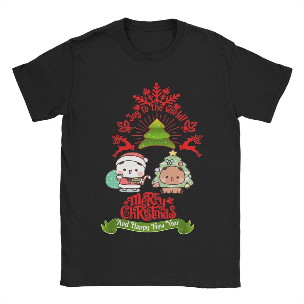 Funny Bubu and Dudu's Festive Christmas Greeting T-Shirts Men Crew Neck Cotton T Shirt Short Sleeve Tee Shirt Summer Clothing