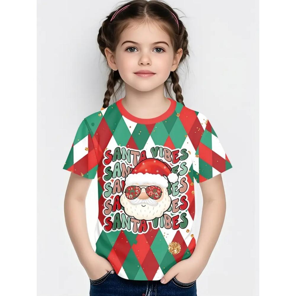 Cute Santa Claus Children's T-Shirt Christmas 3D Print Girl Short Sleeve T-Shirt Holiday Boys Clothes O-Neck Tees Tops Clothing