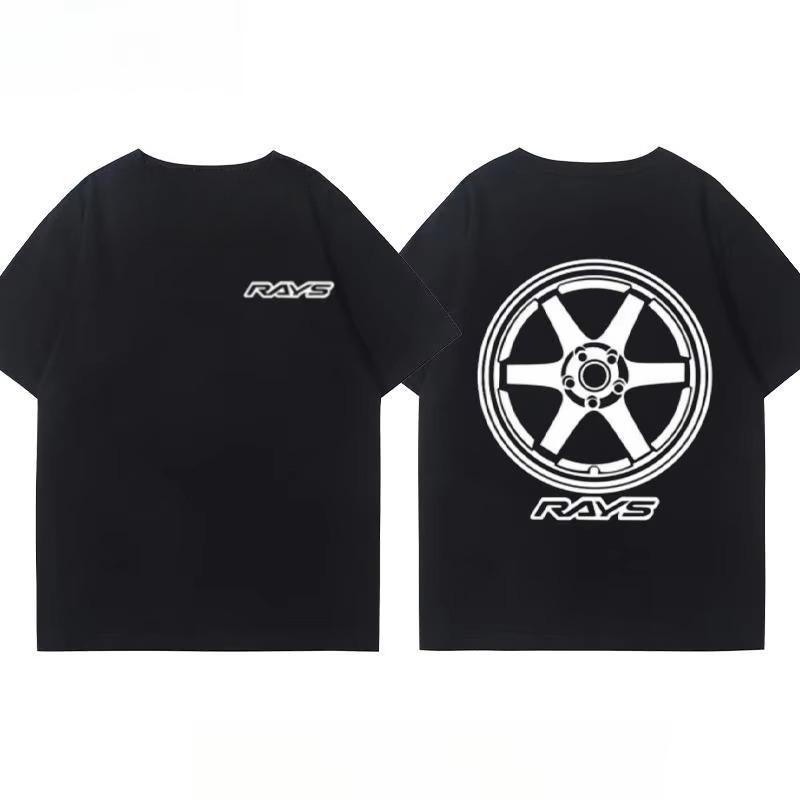 Japanese Car Modified Rim TE37 Wheel Hub Modified Car JDM Short-sleeved T-shirt Men's and Women's Cotton Half-sleeved Top