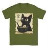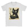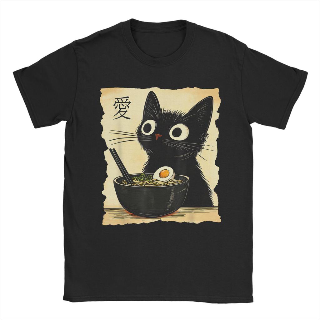 Men's Japanese Black Cat Ramen T Shirts Kawaii Noodle Cat Cotton Clothing Creative Short Sleeve Crew Neck Tees Summer T-Shirt