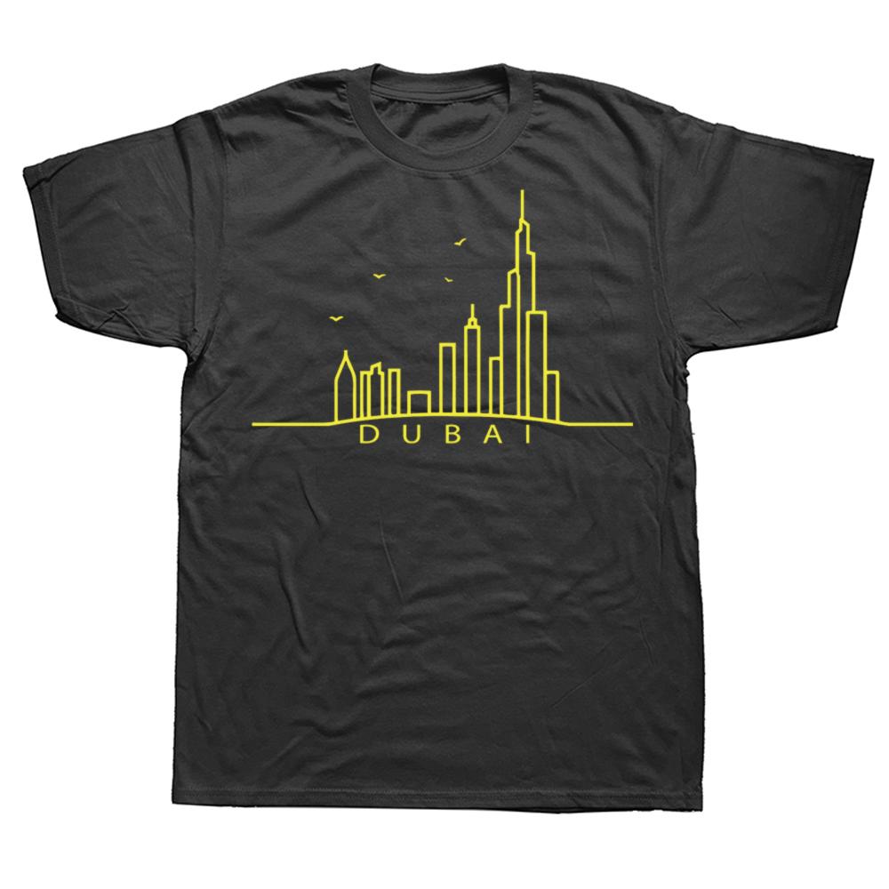 Funny Line Dubai Cityscape Classic Graphic T-shirts Men Women's Fashion Casual Tshirt 100% Cotton Loose Oversized T Shirt