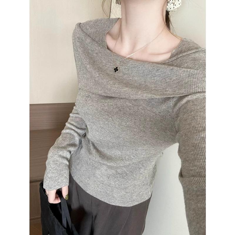 Gentle and Lazy Wind One-word Neck Sweater Bottoming Shirt Women's Spring Thin Age-reducing Long-sleeved Inner Top