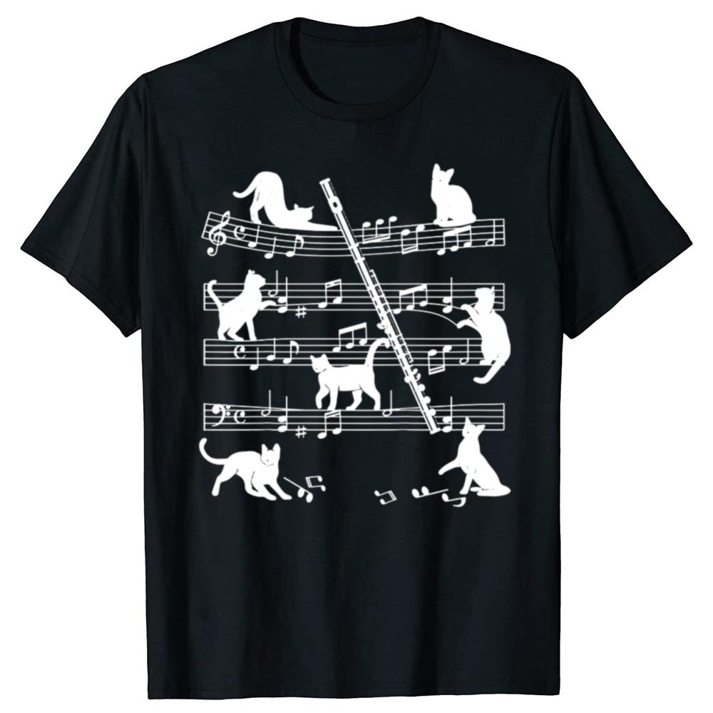 Flautist Flutist Cats Flute Player T Shirts Graphic Cotton Streetwear Short Sleeve Birthday Gifts Summer T-shirt Mens Clothing