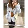Korean Style Polo Collar Striped Shirt for Women Spring and Autumn Embroidered Jacket Top