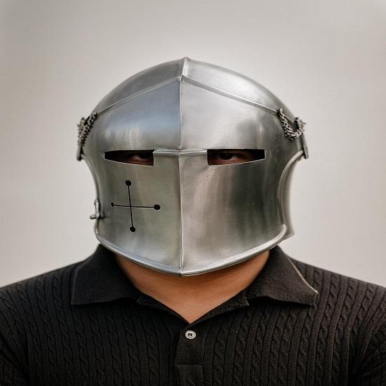 Upgrade your medieval collection with this Barbuta Helmet Medieval Knight Armor, expertly handcrafted from 18-gauge mild steel. Designed for history lovers, cosplay enthusiasts, LARP warriors, and collectors, this helmet combines authentic medieval style with modern comfort. Whether you’re preparing for a Halloween costume, role-play event, re-enactment battle, or simply want a striking decorative piece, this Barbuta helmet delivers durability, comfort, and historical accuracy.