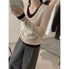 Trendy Retro Fake Two-piece Knitted Sweater Women's Autumn and Winter Collar Sexy Contrasting Color Inner Bottoming Shirt Top