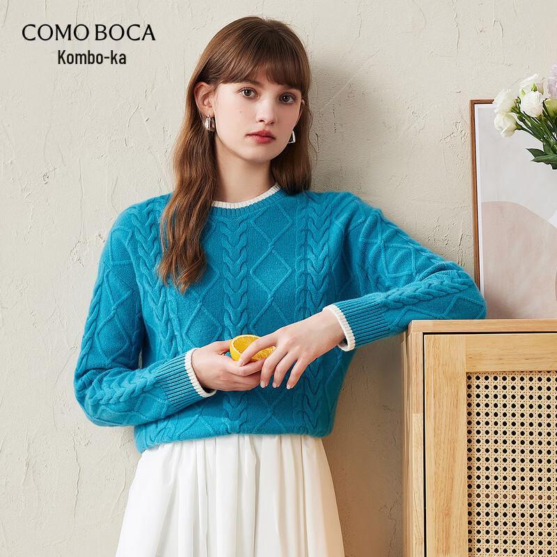 Komom Boka Women's Cable Knit Pure Wool Round Neck Sweater