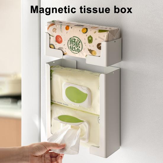 Maximize space and efficiency with our all-in-one magnetic tissue box holder! Featuring a powerful magnetic backing, it securely attaches to any metal surface like refrigerators, freezers, or filing cabinets—no drilling required. Easily switch between holding tissue boxes, disposable gloves, or wipe packs with its versatile, adjustable design. Installation is a breeze with our wall-mounted design. Simply peel off the protective backing and stick it to any clean, flat surface.