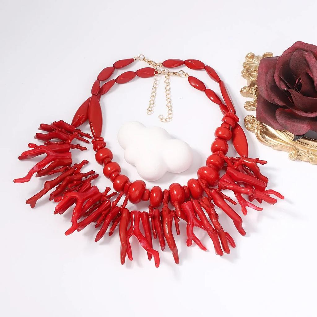 Bohemian Style Double-layer Resin Coral Necklace for Women, Fashionable and Personalized Plant Red Gothic Halloween Accessories