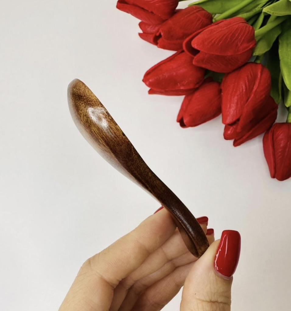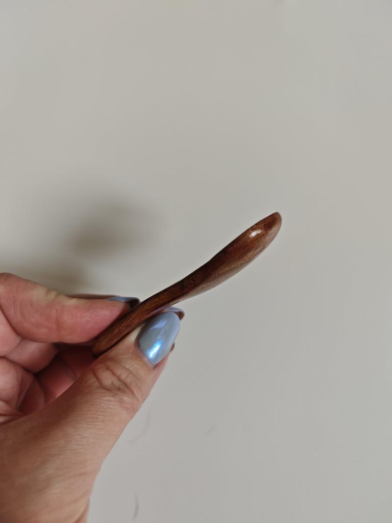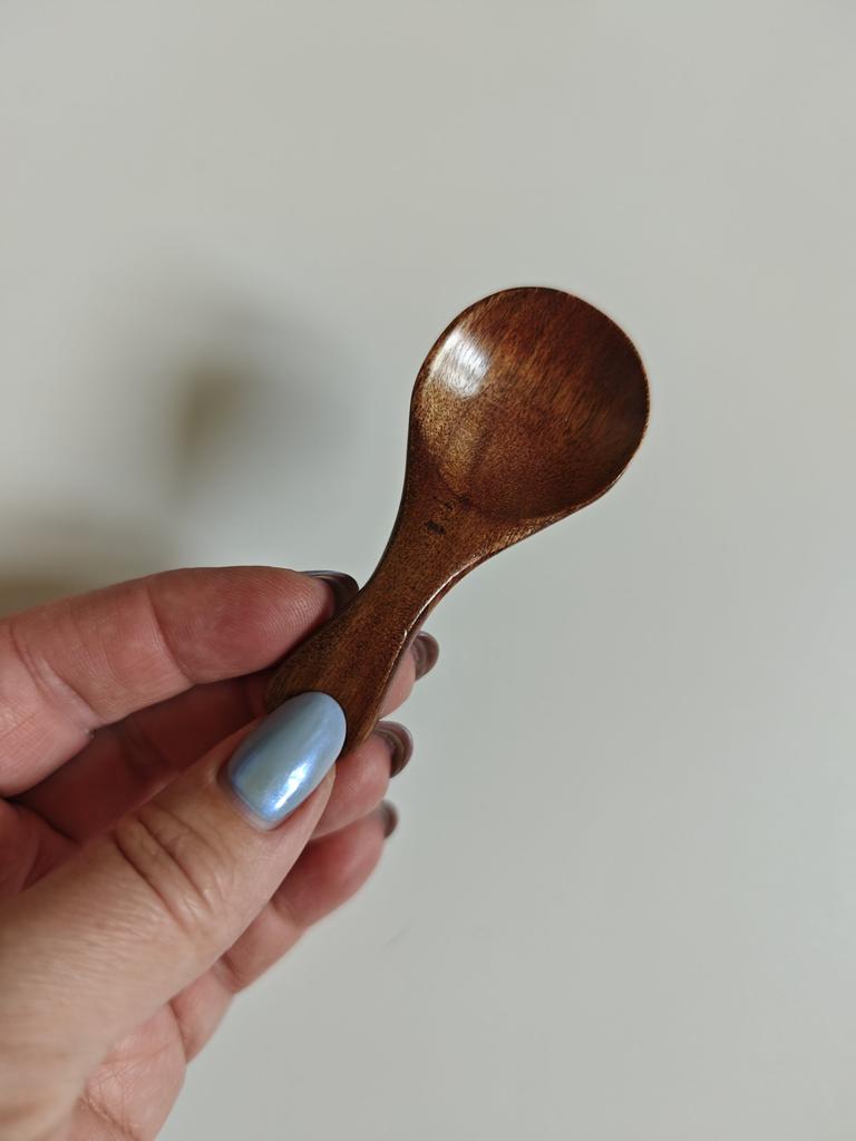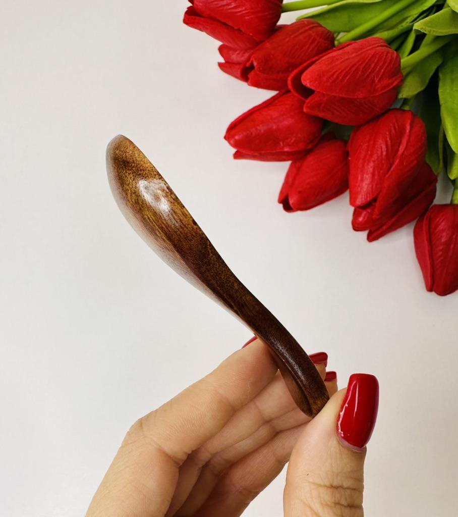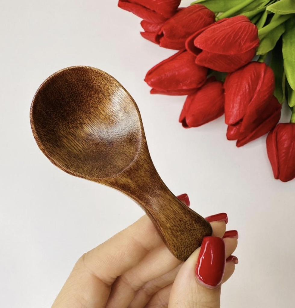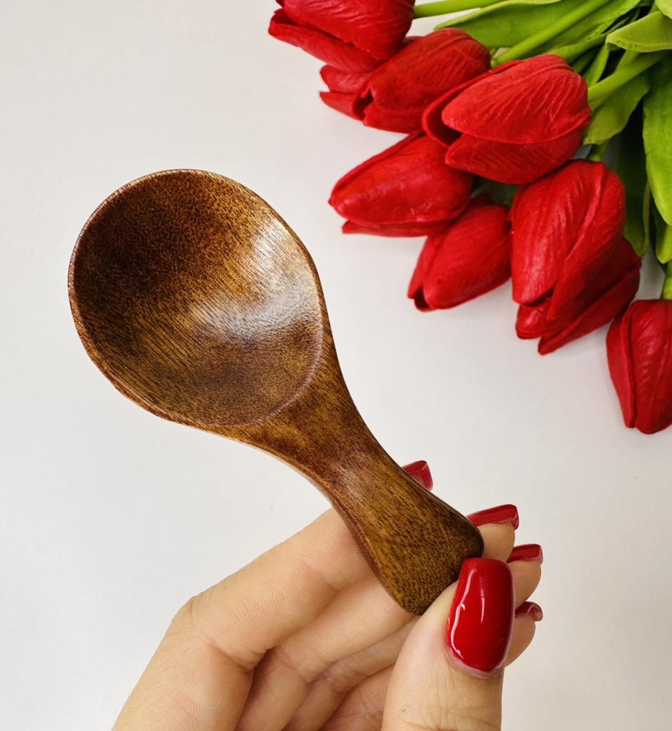 At first glance it might seem like a simple decorative detail, but in day-to-day life it becomes that piece you didn't know you needed until you have it in your hand. It's the perfect complement for those spice, coarse salt, or coffee jars where a normal spoon simply doesn't fit or is too coarse.. What I like the most is its organic feel. Being carved in wood with a smooth varnished finish, it has a warmth that metal or plastic can never imitate. It is lightweight, has a very comfortable ergonomic curvature for the fingers, and its size is ideal for precise dosing without wasting anything. In addition to being functional, it adds a rustic and well-cared-for touch to the presentation of any table or kitchen shelf. It is a small piece in size, but huge in charm and utility for lovers of well-made details.
