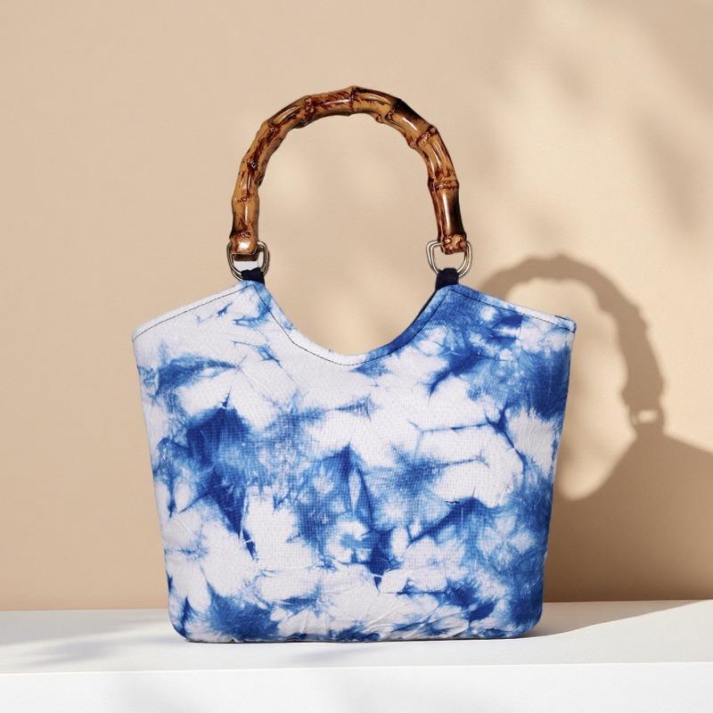 Handcrafted Tie-dyed Bamboo Joint Handbag, Retro and Artistic Bag, Bamboo Joint Carrying Bag, Large-capacity Travel Cloth Bag