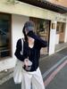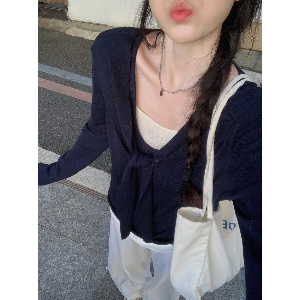 Spring and Autumn New Contrasting Colors Strap Collar Fake Two Pieces Stacked Knitted Sweater Backing Sweater Women's Top