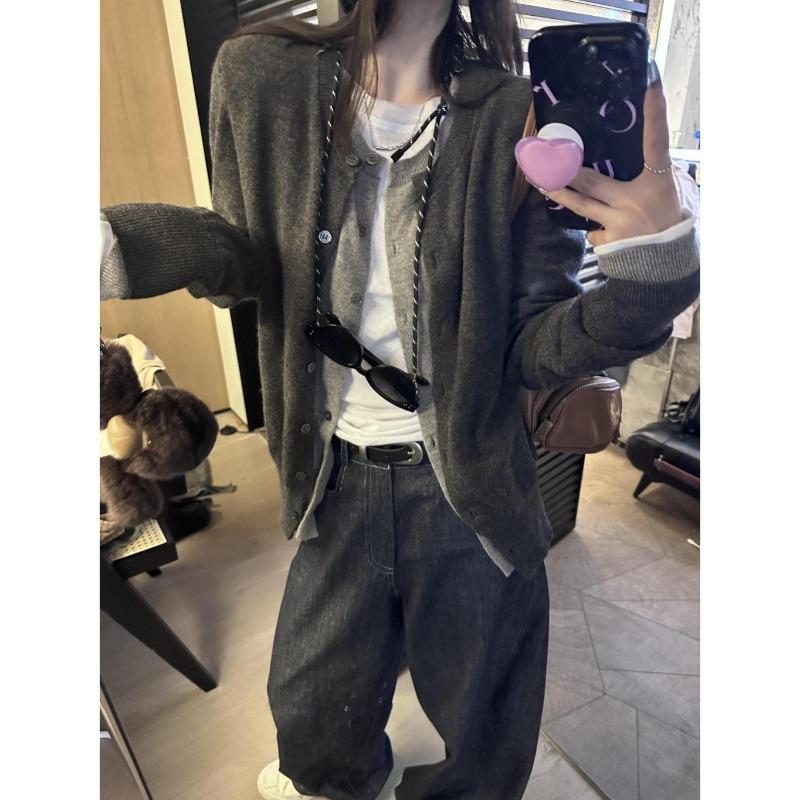 Layer Contrasting Color Splicing Fake Two-piece Top Cardigan Women's Autumn and Winter Soft Waxy Lazy Knitted Sweater Jacket