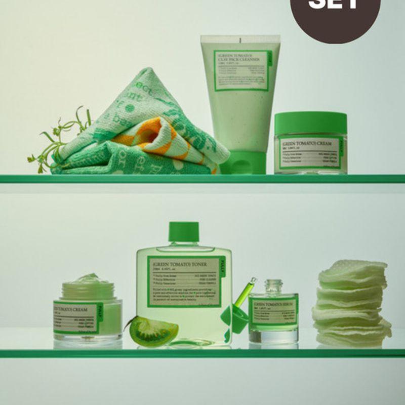 [SET] Vegan Green Tomato 4-Piece Set (1 Cleanser, 1 Toner, 1 Serum, 1 Cream)