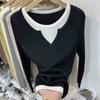 Fake Two-piece Neck Knitted Bottoming Shirt Women's Spring New Contrasting Color Soft Waxy Inner Top Sweater