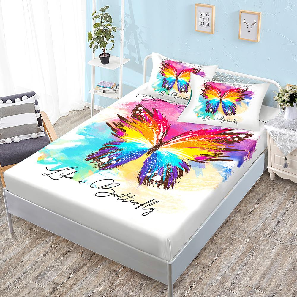 Three-Piece Mattress, Bedspread, Butterfly Animal Rainbow Mattress, Protective Cover.